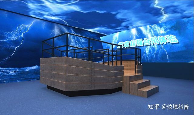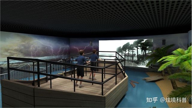 臺風體驗館現場模擬效果逼真,音效一流,立體感強。運用影音、風效和電子噴霧技術,通過噴霧、燈光、出風、音響、影像多媒體等系統(tǒng),為體驗者模擬出一個臺風來臨時的真實場景。